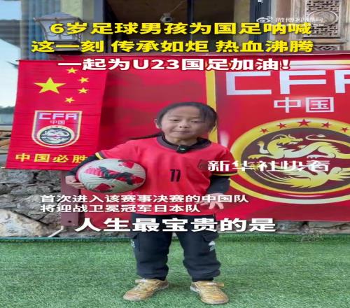 6岁足球男孩赛前为国足呐喊: “计划有变,准备夺冠!人生最宝贵的是永不放弃的心态,最爽的是把不可能变成可能。”