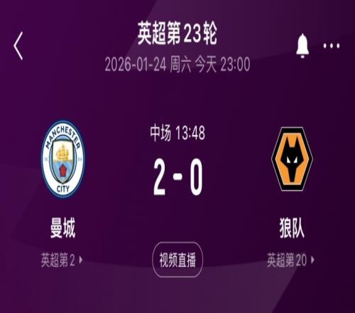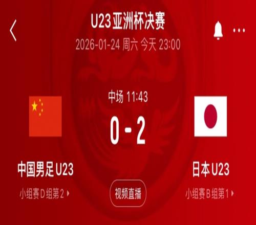 体育播报01月24日宣 U23亚洲杯决赛,U23国足半场0-2暂时落后日本队。与此同时开球的英超比赛,曼城半场2-0领先狼队。