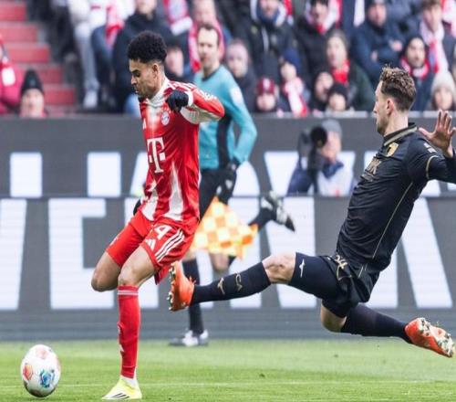 比赛第23分钟,拜仁取得进球!奥利塞开出角球,伊藤洋辉头球攻门,球进了!2分钟后,迪亚斯在禁区左侧起球传中,卡尔后点包抄凌空射门,踢飞了。随后,迪亚斯在禁区左侧小角度射门被封堵出去。