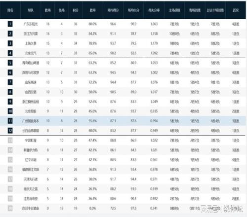 至此,本赛季常规赛赛程已经来到20轮,目前有6支球队完成20场比赛。本轮广东男篮主场告捷,暂时攀升到榜首位置,浙江广厦、上海久事分列第二、第三。