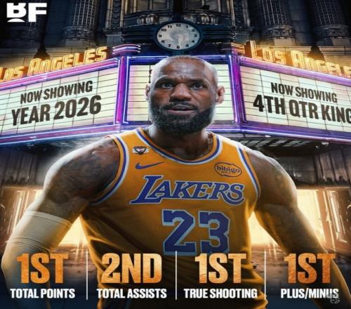 詹姆斯在对阵公牛的比赛中,延续他各种41岁、第23个赛季都能各种联盟第一。詹姆斯在这场比赛第四节得到4分2助攻,继续他的末节之王壮举。湖人本赛季可是打了一堆关键时刻战,14胜2负,一度13连胜,这可是历史第二的神迹。而14胜2负,也是联盟第一。所以湖人本赛季有一堆末节需要表现的比赛,而詹姆斯是末节之王,不仅仅是球队,还是联盟,可见詹姆斯的强势。