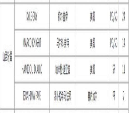 山西男篮的全新四外援阵容出炉,分别是迪亚洛、奈特、法耶与盖伊。