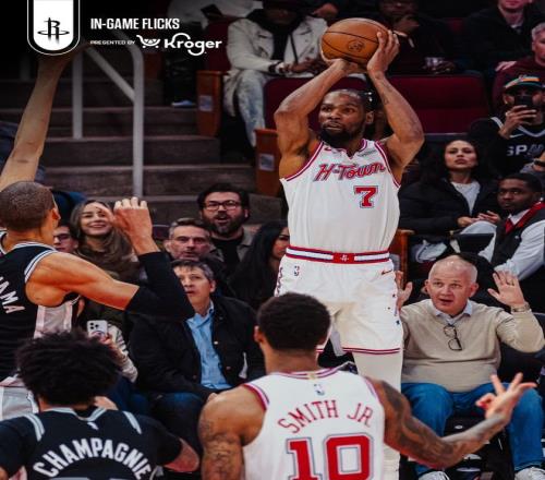 北京时间1月29日,NBA常规赛继续进行,休斯敦火箭队(28胜17负)遭遇败仗。虽然杜兰特生涯三分球数超越卡特升至历史第10,但文班亚马得到28分和16个篮板,他率队末节上演翻盘好戏,圣安东尼奥马刺队(32胜15负)在客场以111-99逆转战胜火箭队。火箭队结束2连胜。