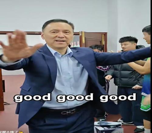 老帅张德贵打了大胜仗后,全队疯狂庆祝,扬眉吐气,像过节一样高兴。他们在更衣室的庆祝画面也曝光出来。贵叔举起双手走进更衣室,全场一片欢呼,贵叔一一与队员击拍,并招呼大家坐下来。然后贵叔两手插腰激情讲话:“今天取得的胜利,都是靠我们团队的胜利,尤其是控制外线非常好,控制外线投进,只让他们投进6个三分,外线基本没有给我们制造威胁。问题就是执行,我们准备会的要求,执行非常坚决。”