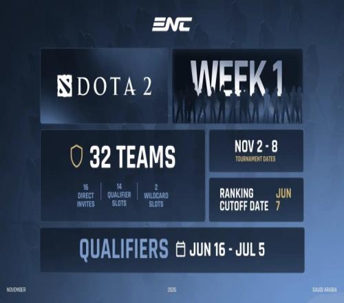ENC 的 Dota 2 锦标赛将于 2026 年 11 月 2 日开始,并于 2026 年 11 月 8 日举行季后赛决赛。